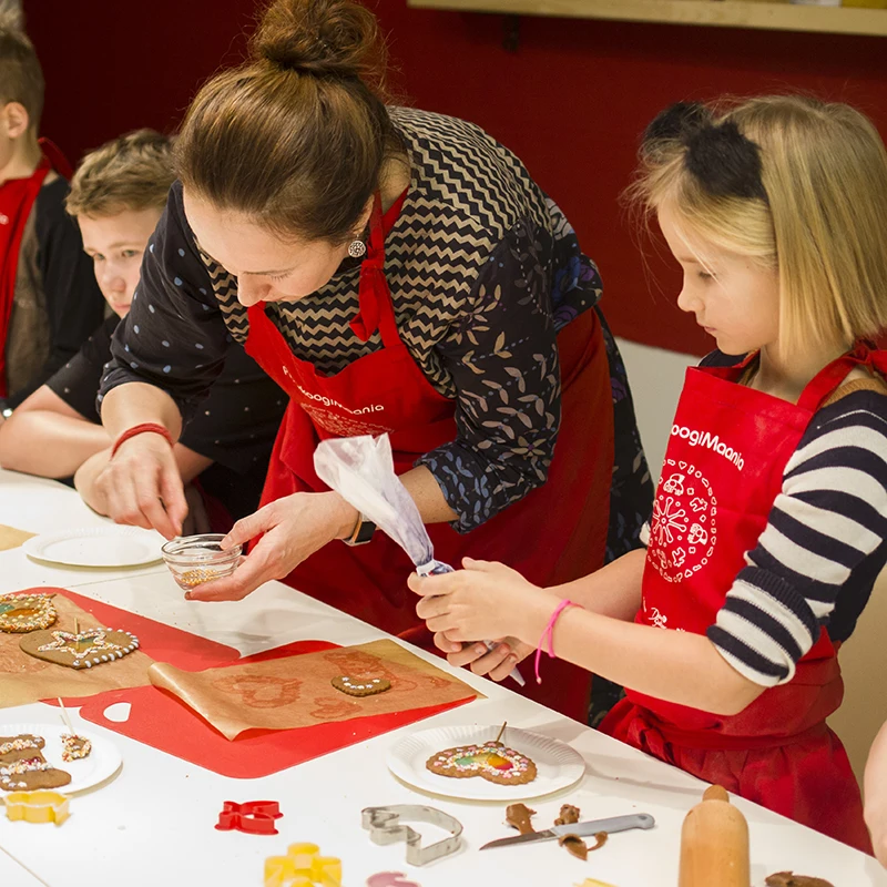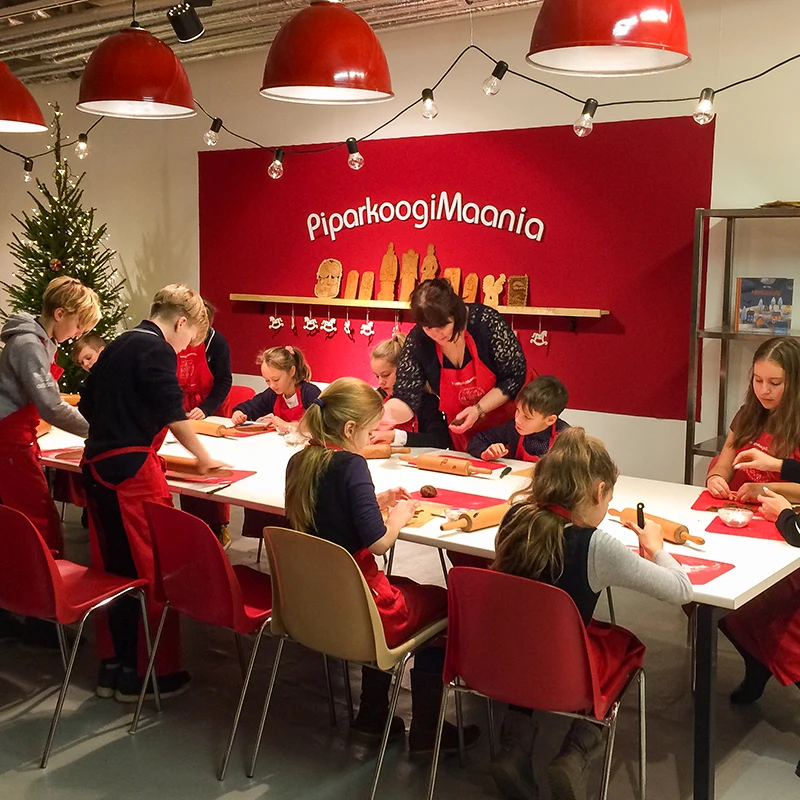 The workshops take place on the lower floor of the PiparkoogiMaania exhibition, in our cozy pop-up kitchen, where all the conditions are set for baking and decorating exciting gingerbreads. The workshops are open to everyone, but mornings are reserved for schools, and we offer a discounted price for classes.